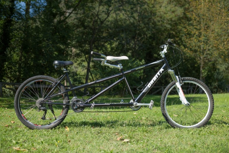 Disponemos de Tandems en dos tallas diferentes.Grupo Alivio y Deore, 24 velocidades. Con horquilla de suspensión. Aptos para recorrer Vias Verdes. Tarifas.