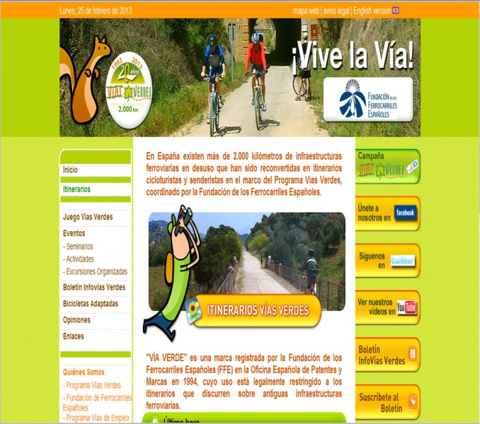 Web oficial de la Fundación de los Ferrocarriles Españoles.En España existen mas de 1700 km de infraestructuras ferroviarias en desuso, que han sido reconvertidas en itinerarios cicloturistas y senderistas, en el marco del Programa de Vias Verdes, coordinado por la Fundación de los Ferrocarriles  Españoles.