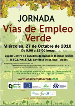 Cartel de las jornadas de Vias de Empleo Verde. Sevilleja de la Jara. Toledo Octubre 2010