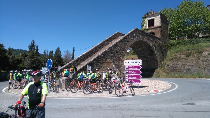 El puente de Portomarin rodeado por nuestros Irlandeses
